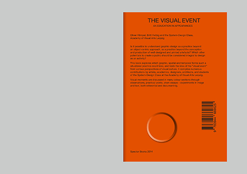 With contributions by Oliver Klimpel, James Hellings, planningtorock, William Haggard, Alexander Garcia Düttmann, Friedrich Tietjen, Eva Weinmayr, Carolin Lerch, Mia Frostner & Robert Sollis (EUROPA), Franciska Zólyom, students of the System-Design class ...Is it possible to understand graphic design as a practice beyond an object-centric approach, as a practice beyond the conception and production of well-designed and printed artefacts? Which other potentials to create a public should be considered integral to design as an activity? “The Visual Event” explores the question of how such an extended practice could be thought, which graphic, spatial and temporal forms such a situational practice could take, and tests the idea of the “visual event” from various perspectives of visual culture. The project compiles numerous contributions by artists, academics, designers, architects, and students of the System-Design Class at the Academy of Visual Arts Leipzig.