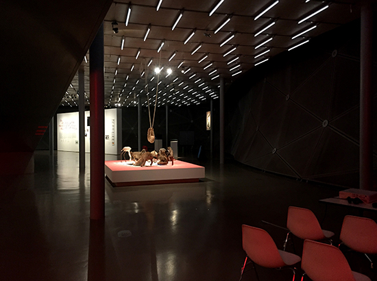 The installation features taxidermy animals in an anthropomorphized setting, a "Reading Group" on a carpet which depicts an enlarged Ex Libris by Arthur C Clarke. The animal dermoplasts are on loan from the Natural History Museum / Collections of Joanneum Graz.